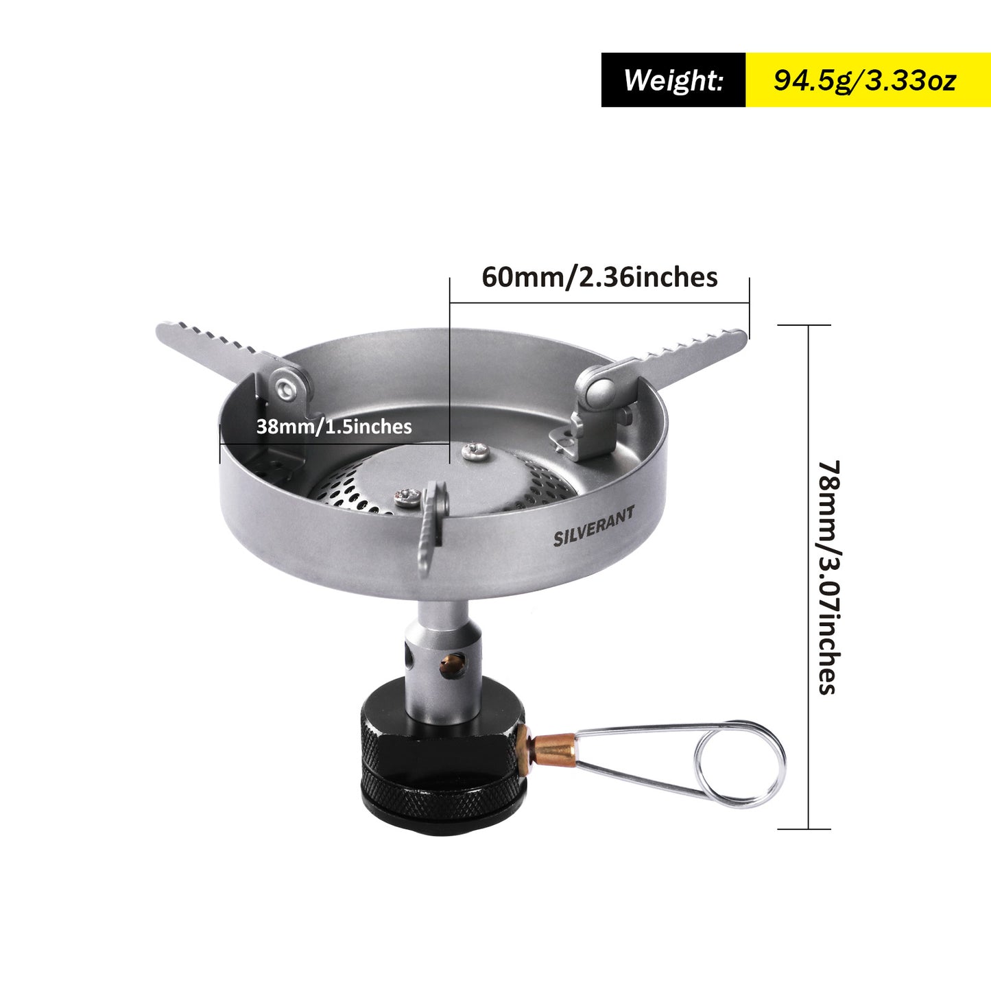When the three arms are fully extended, the stove creates a surface diameter of 120mm/4.72 inches, allowing you to securely hold your cooking pots and pans for even heating. The SilverTi design focused on creating a powerful yet extremely stable gas stove. One of the weaknesses of similar gas stoves is that they aren't that stable or windproof. At SilverAnt, we sought to resolve that issue with our design.