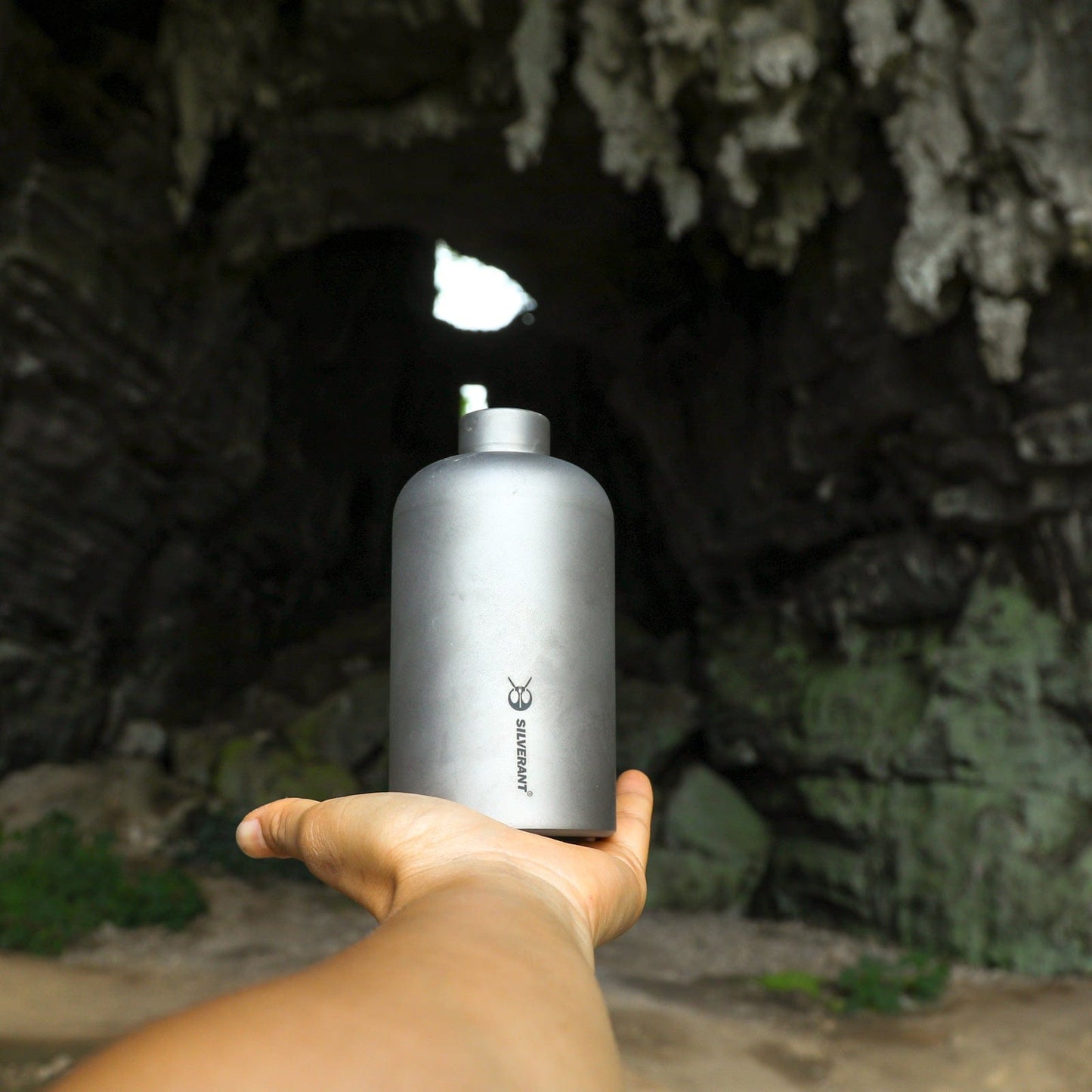 The SilverAnt backpacking water bottle has a titanium single wall construction. It is built and designed using 100% titanium. This means you can heat water over a stove or campfire. Refill your water bottle, boil the water, wait to cool, add a water purification tablet, attach your lid, and continue your hike.