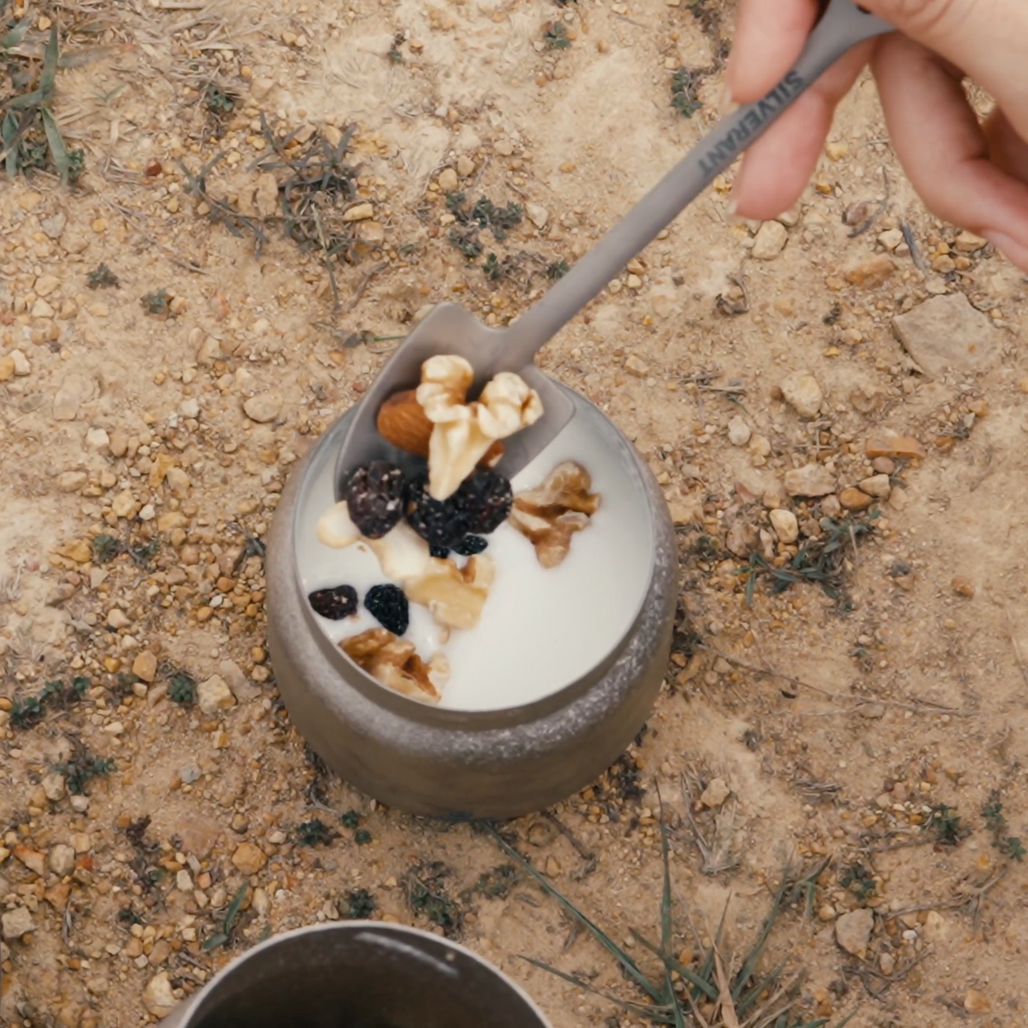 Designed to fit seamlessly into your backpack, this outdoor storage container also nests perfectly inside our titanium pots or cups with a capacity of 500ml/17.6 fl oz and more. Its streamlined shape maximizes space efficiency, whether you’re packing for a hike or storing it in your kitchen.
