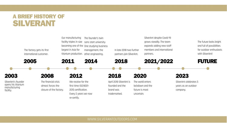 We’re SilverAnt Outdoors. For over two decades, our family-owned factory has specialized in crafting pure titanium gear — built in-house from start to finish. Our mission is simple: to create gear that lasts a lifetime of adventures.