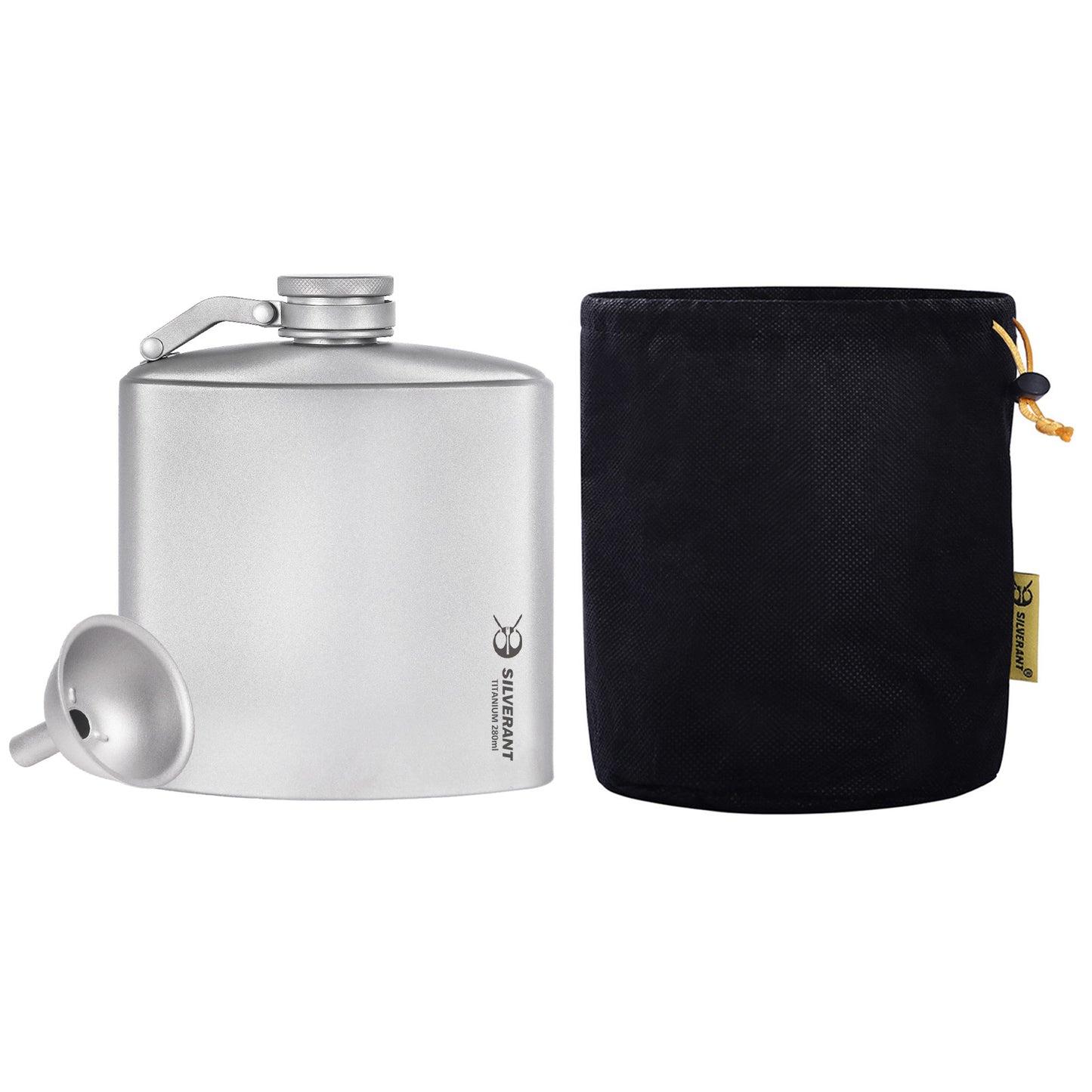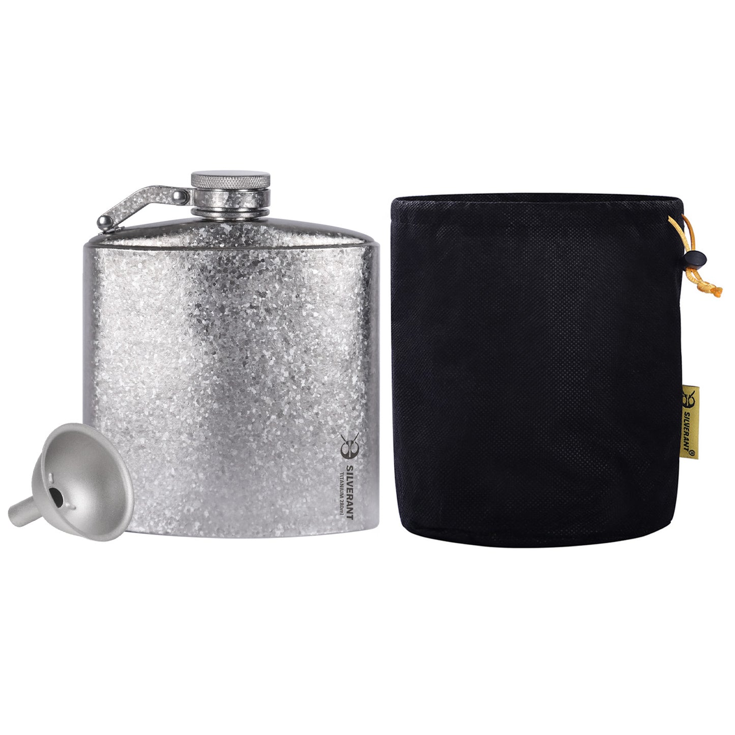 For those seeking a medium-sized yet compact flask to store their favorite spirits, the SilverAnt Titanium Hip Flask (280ml/9.47 fl oz) is ideal, weighing just 105g/3.7 ounces when empty, with dimensions of 105mm/4.13 inches (width) and 125mm/4.92 inches (height).