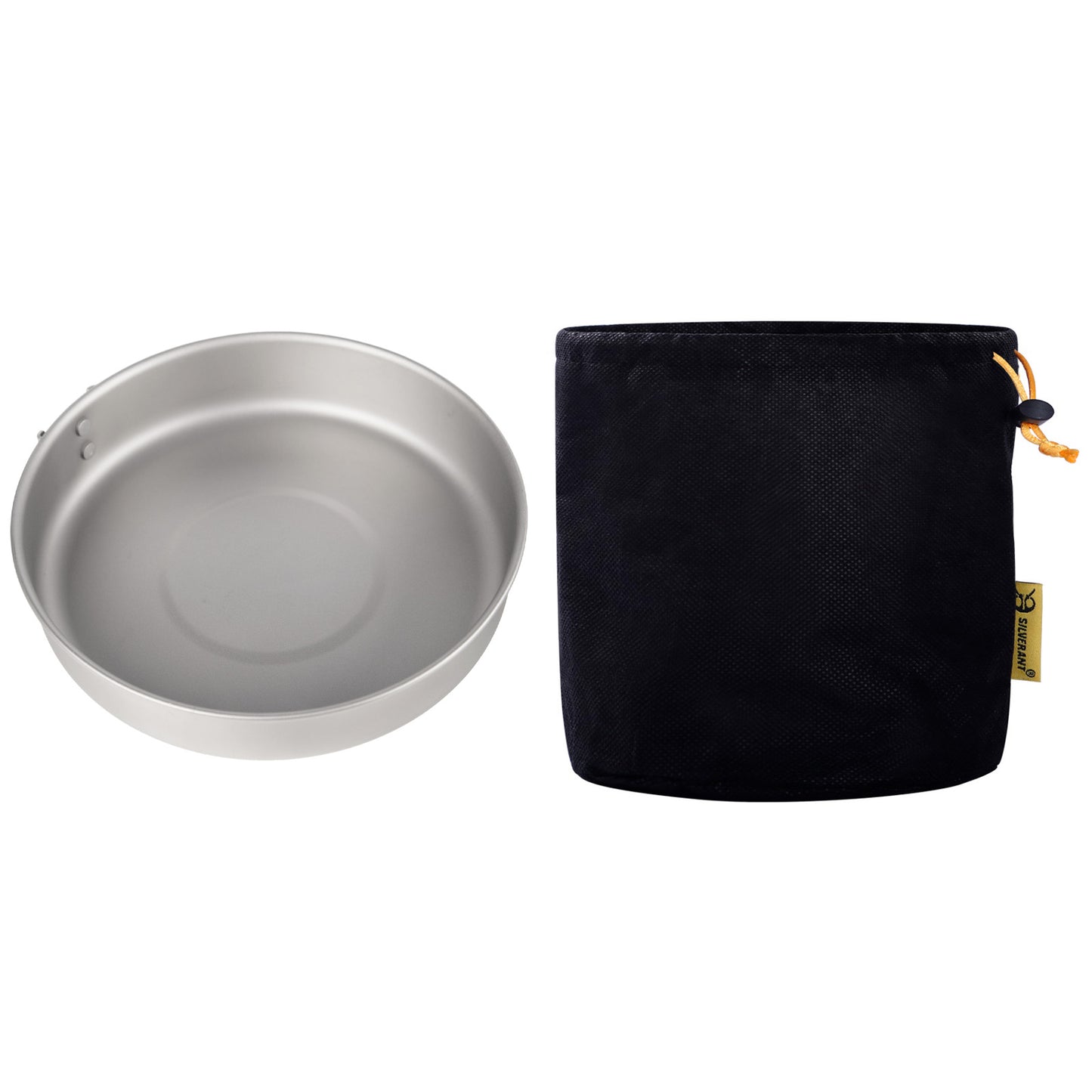 SilverAnt's essential 2-piece titanium camping cookware set. Each camping ware set comes with a titanium frying pan, titanium pot, and lid(buy together or separately). Together they allow any adventurer to prepare and cook a great outdoor meal.